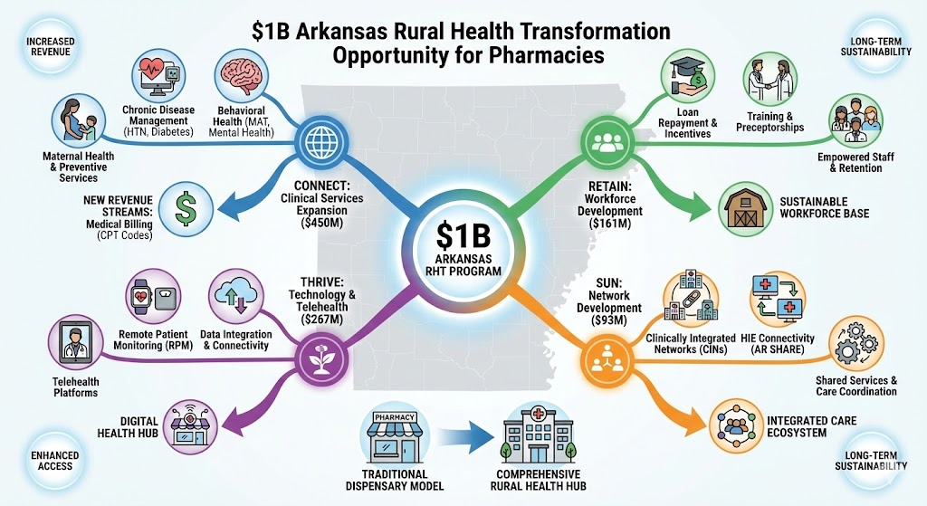 A practical guide on how Arkansas pharmacies can navigate the Rural health Transformation funding and expand clinical services.